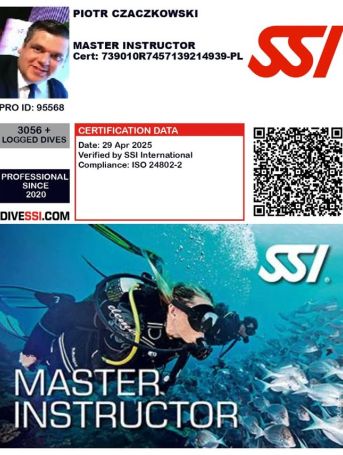 Z ogromną dumą informujemy, iż Piotr zdobył jedno z najwyższych uprawnień instruktorskich w federacji SSI – tytuł Master Instructor! 🥇🌊