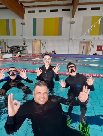 Ekipa podzielona na 2 grupy w składzie: Ola, Kasia, Sławek, Kostia i Dzianis rozpoczęła swoją przygodę z nurkowaniem! 🌊💪 Pierwsze kroki (a raczej zanurzenia!) już za nami — emocji, śmiechu i dobrej energii nie brakowało. 🔥