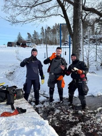 „Jestem hardkorem” 🙂 tak napewno mogli powiedzieć Maciek i Kamil podczas dzisiejszego szkolenia sucharowego i Side Mount 💪 Butle przymarzały do pomostu,suche skafandry można było stawiać w pionie 😂